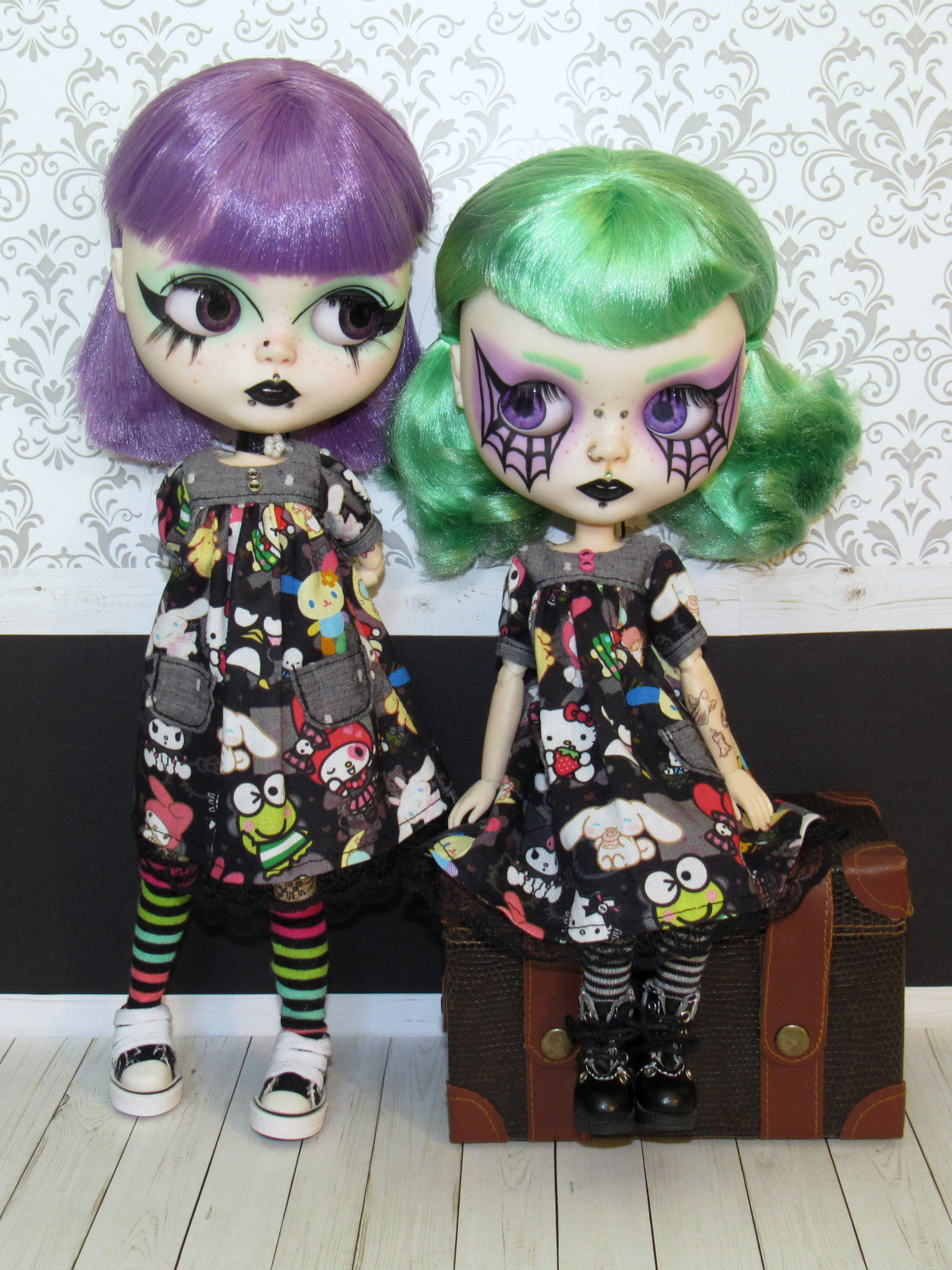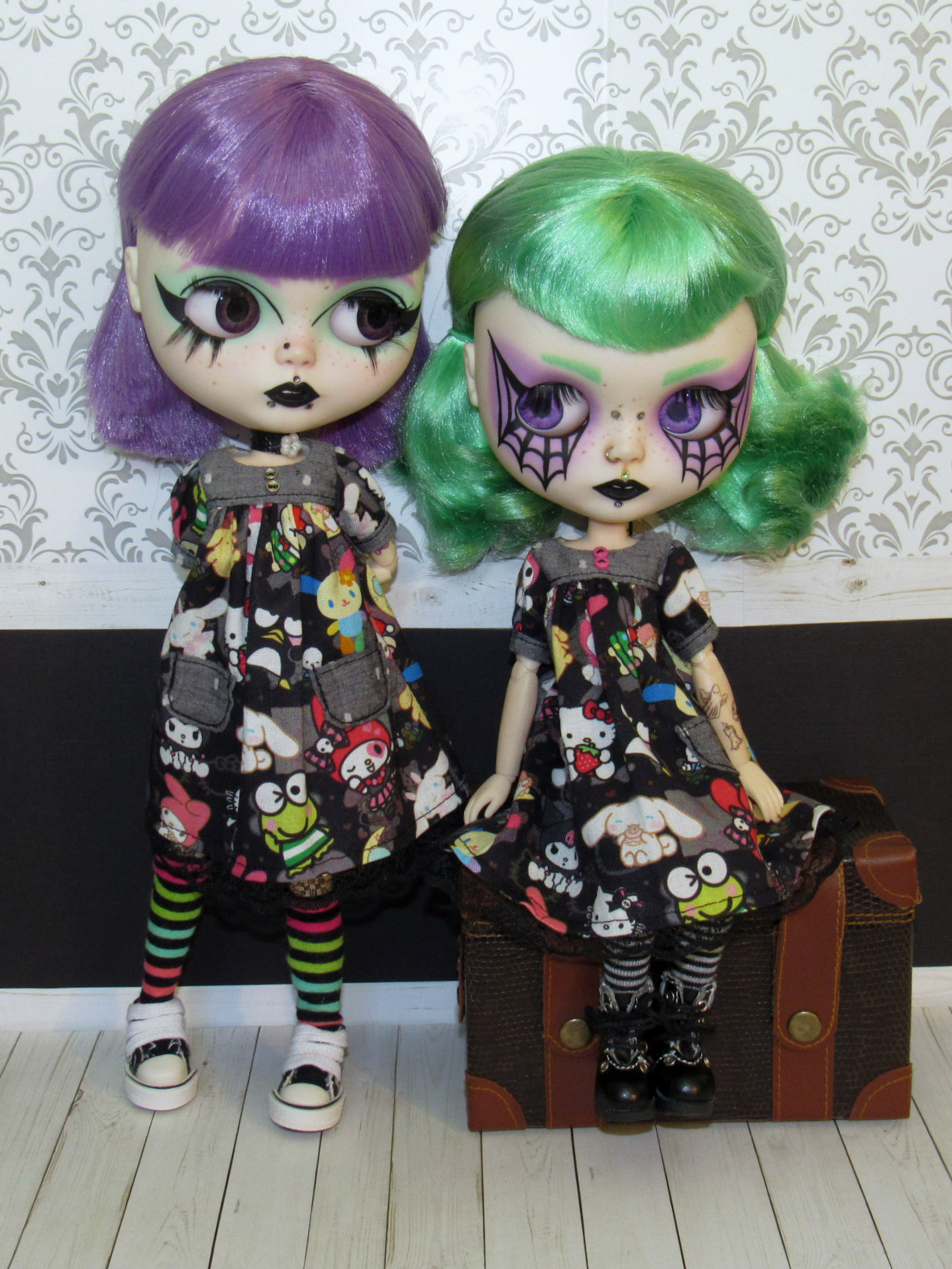 Sanrio Print Babydoll Dress For Blythe, Pullip, Rainbow High, 1/6 Fashion Dolls
