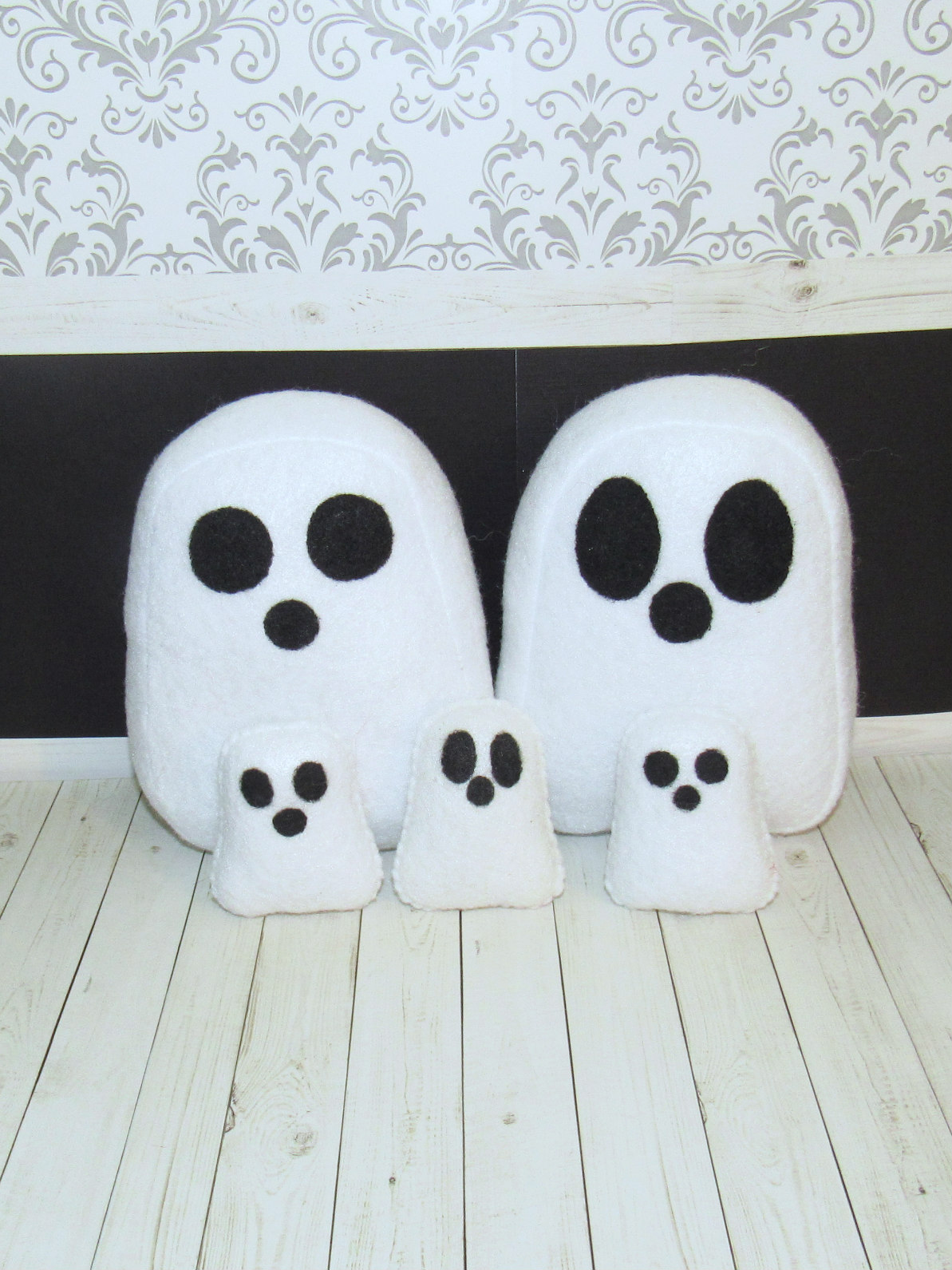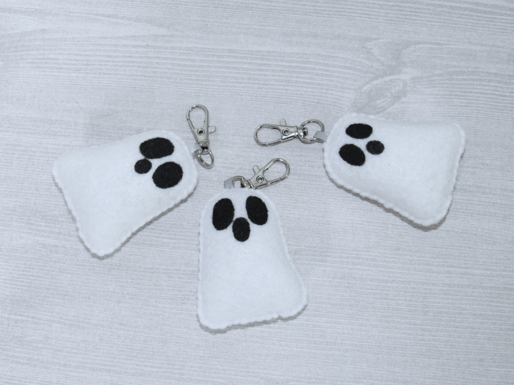 Teeny tiny (~2" tall) ghost plush, the perfect size to be a pocket pal, or to add to a spooky miniature diroama! They also make for adorable plushy friends for smaller dolls. Each are sewn and painted by hand, so some small variations may occur.