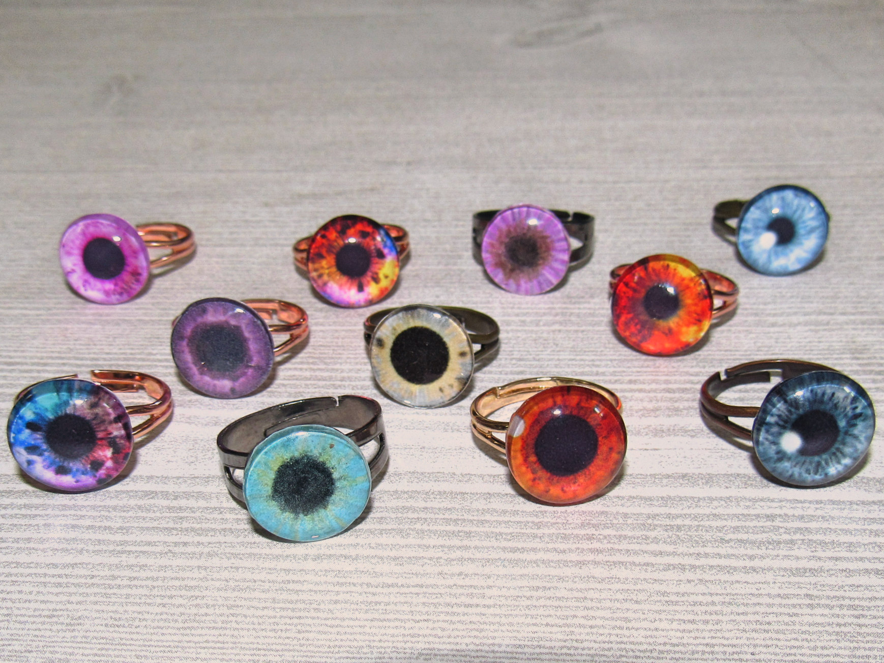 Blythe doll eye chips on adjustable nickel-free ring bases. Please state your color choice in the "notes to seller" section. These chips are A-Grade, with no clearly visible flaws, but they are also handmade so they may not be 100% perfect.