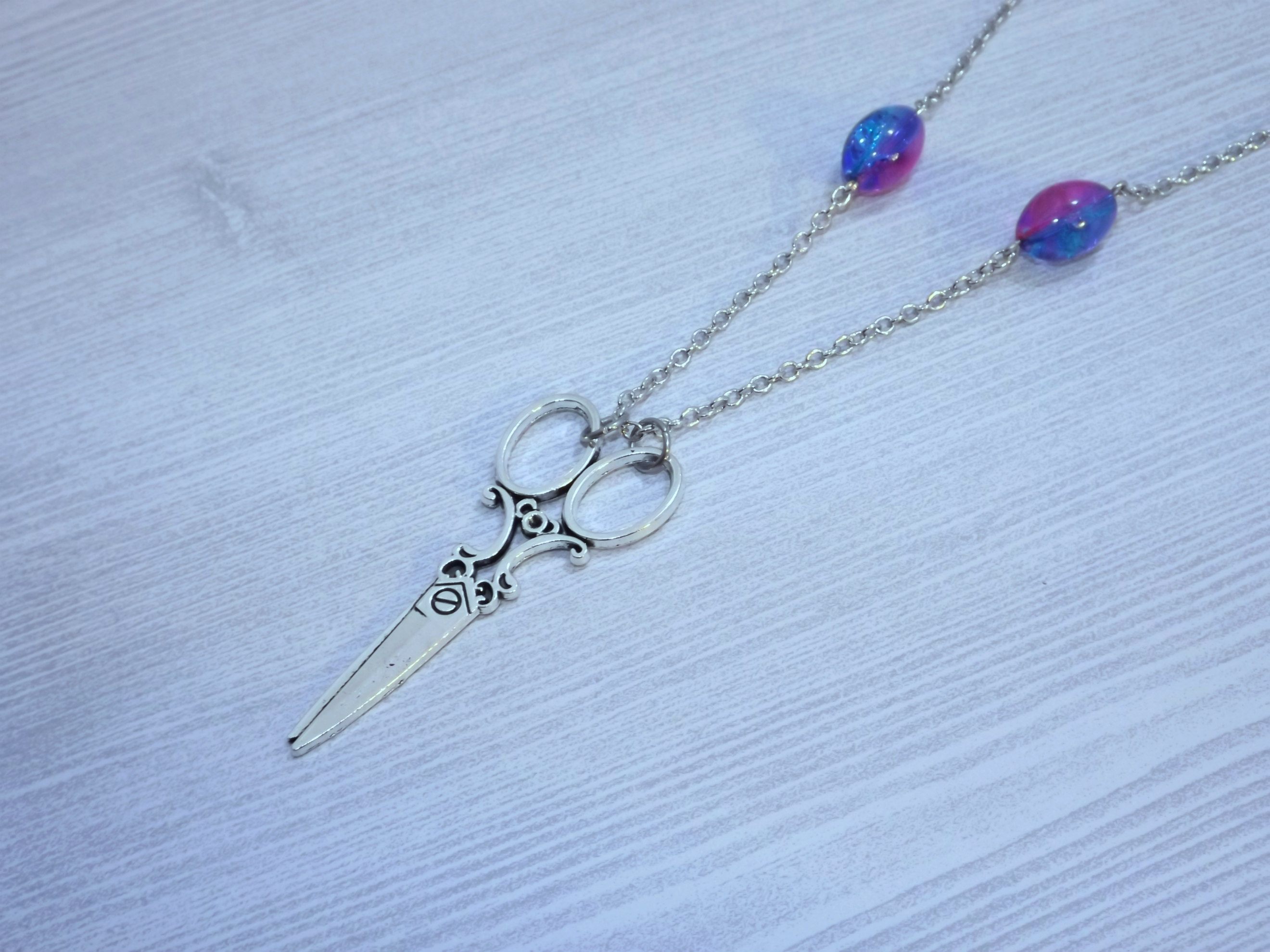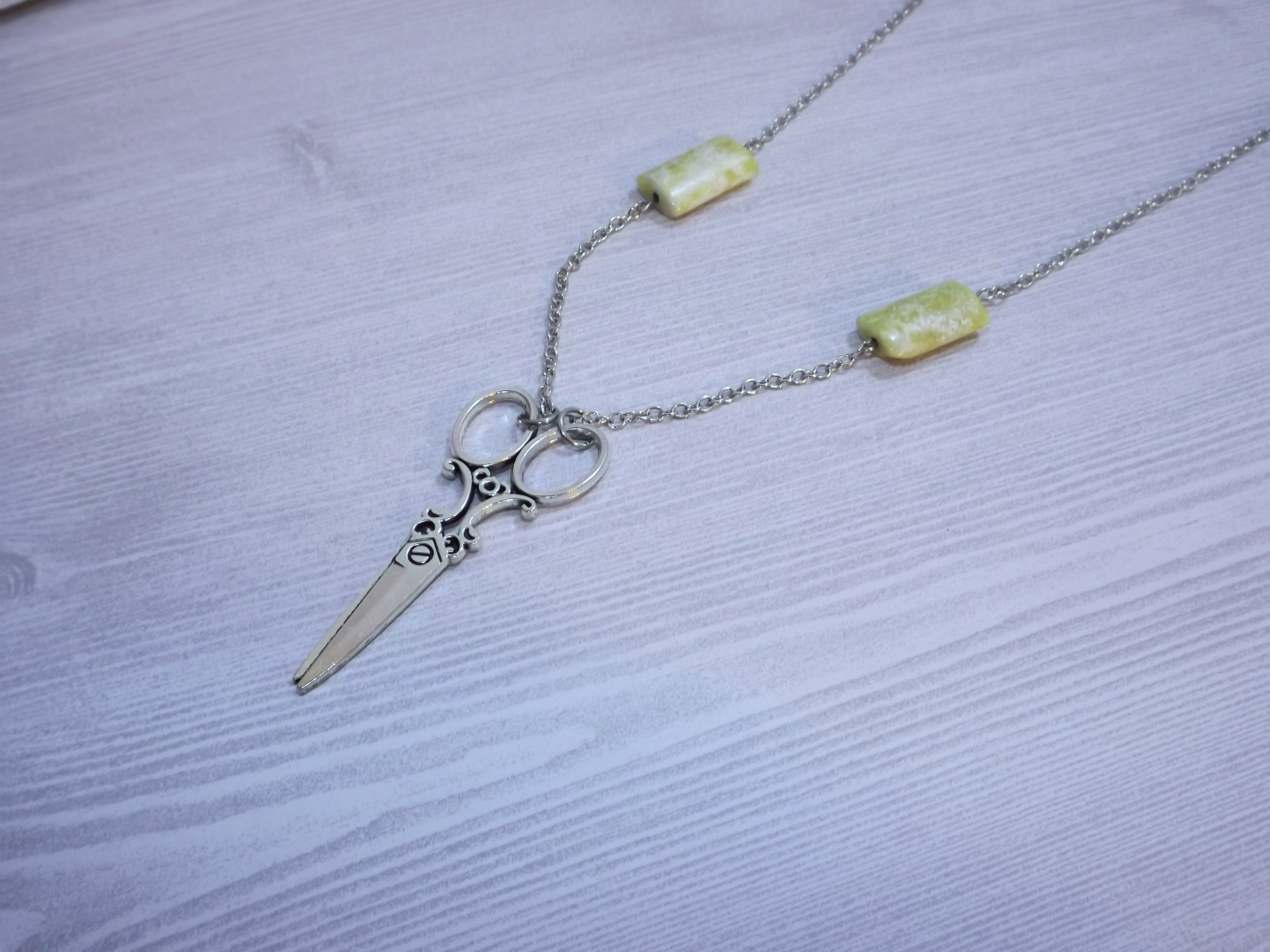 This gorgeous large (2 1/2" long) vintage-styled scissors pendant would make a great gift for the stylist, seamstress, or crafter in your life! Pendant comes on a 20" long silver chain accented with 2 accent beads. 3 styles to choose from. Please ask for detail photos of beads before ordering if needed!