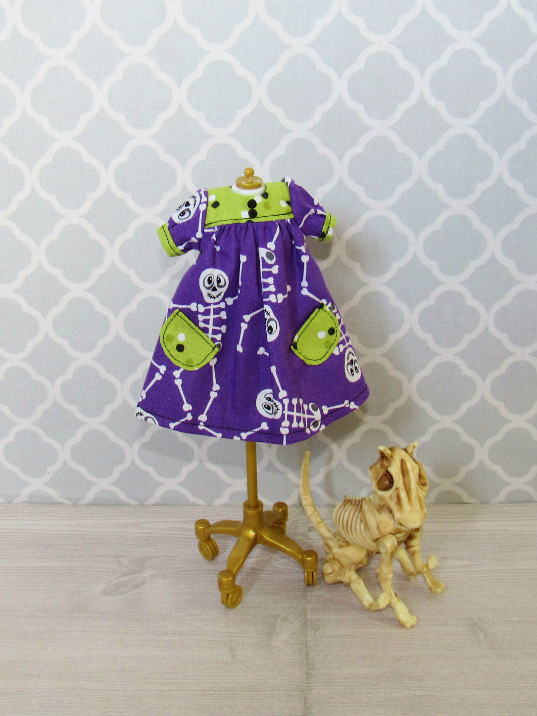 Skeleton Babydoll Dress For Blythe, Pullip, Rainbow High, 1/6 Fashion Dolls