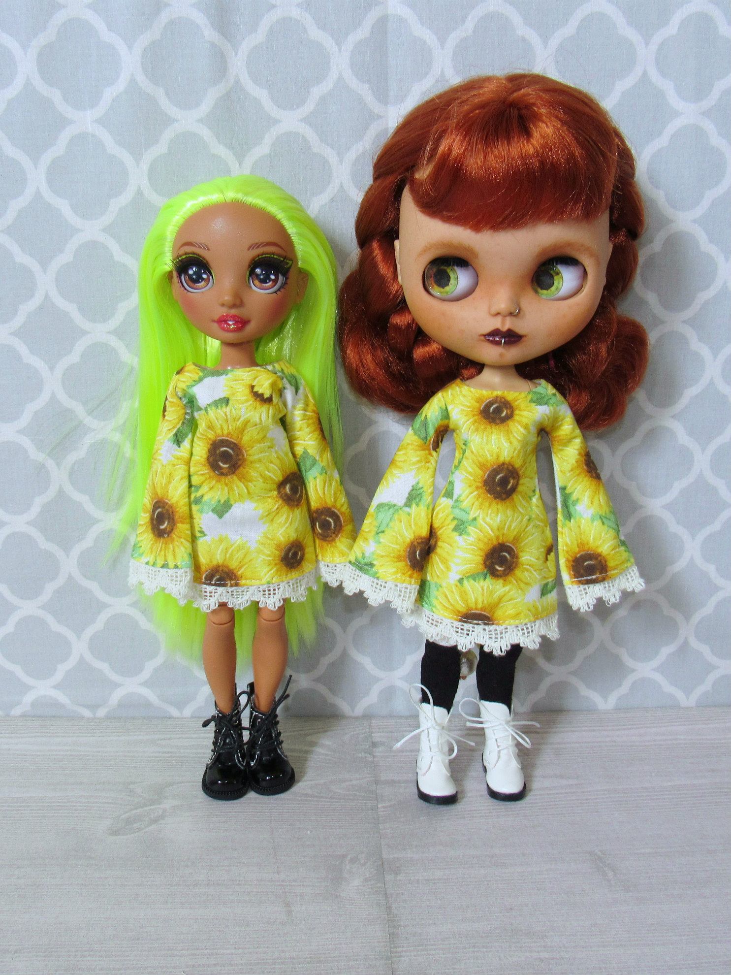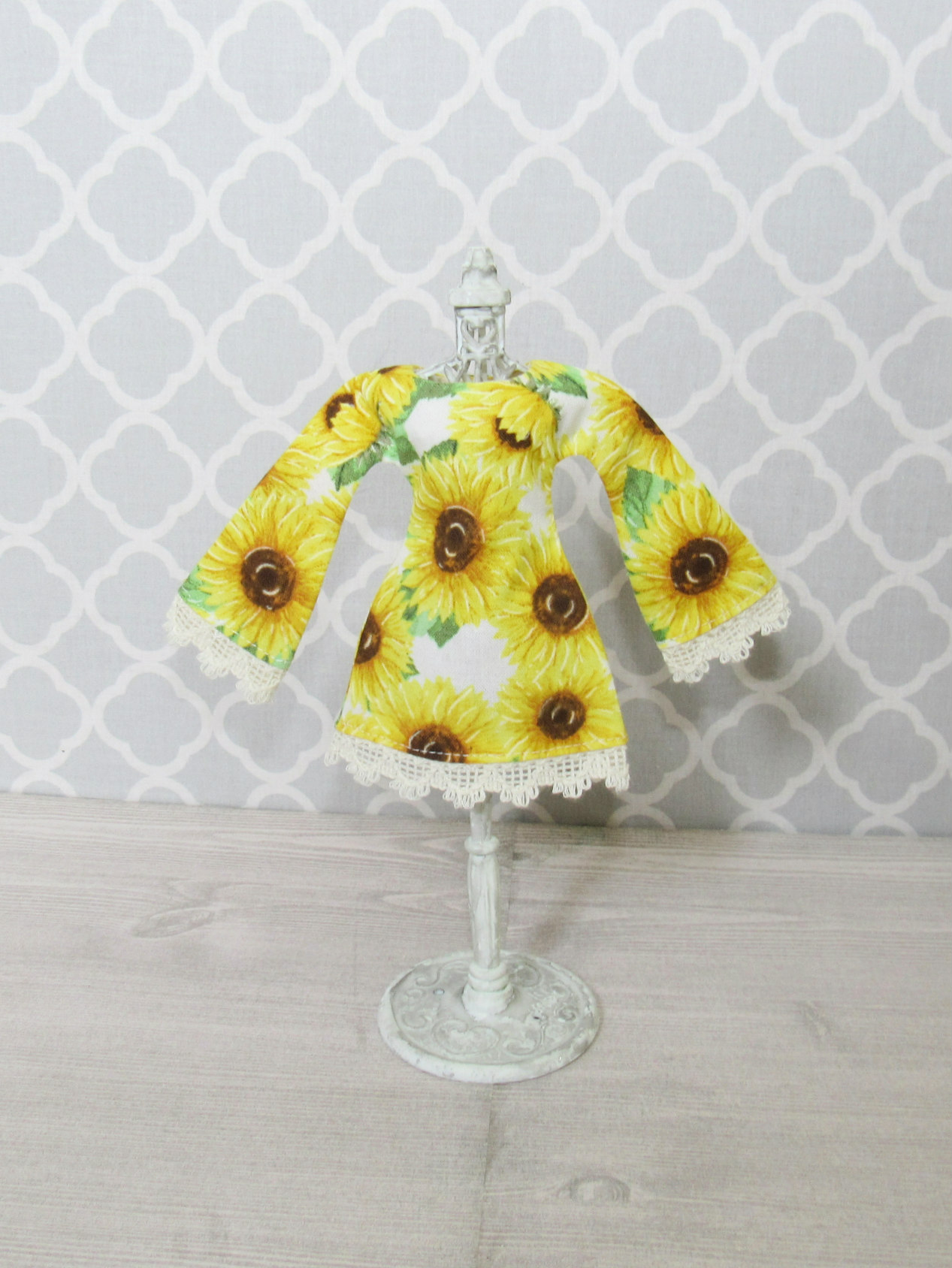 Sunflower Print Bell Sleeved Mini Dress For Blythe, Pullip, 1/6 Fashion Dolls