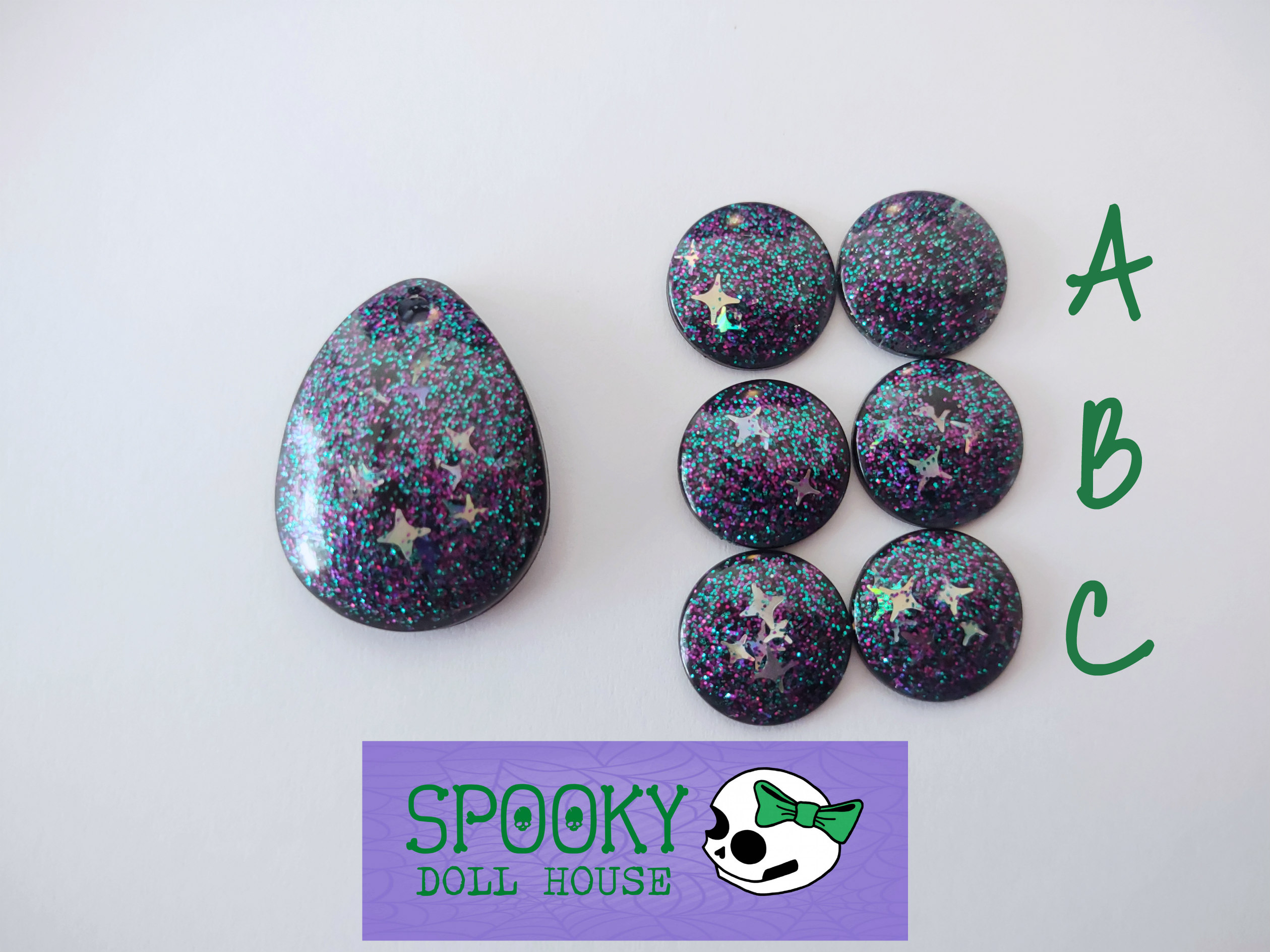 Blythe Doll Furby Eye Chips & Pull Charm- Midnight Glitter (Less Stars)
