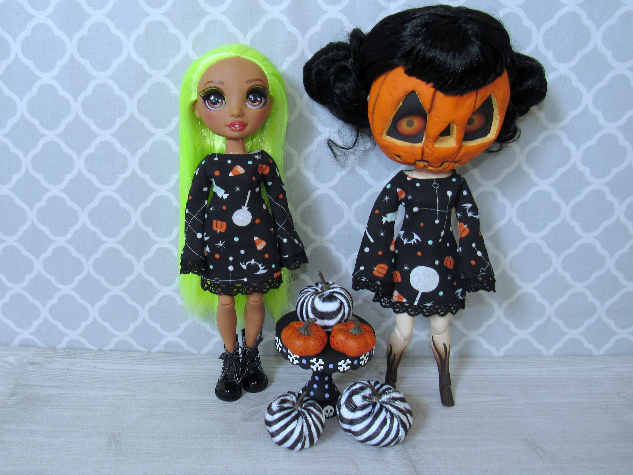 Halloween Candy Bell Sleeved Mini Dress For Blythe, Pullip, 1/6 Fashion Dolls
