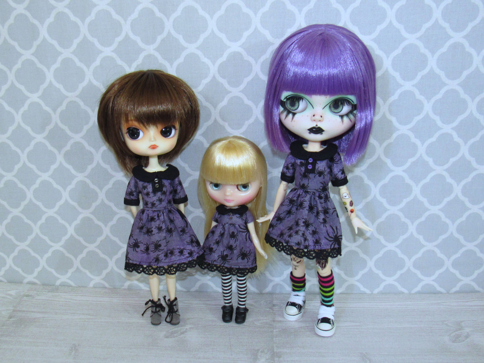 Purple Spiders Vintage-Style Dresses for Blythe, Middie, Pullip, Small Fashion Dolls