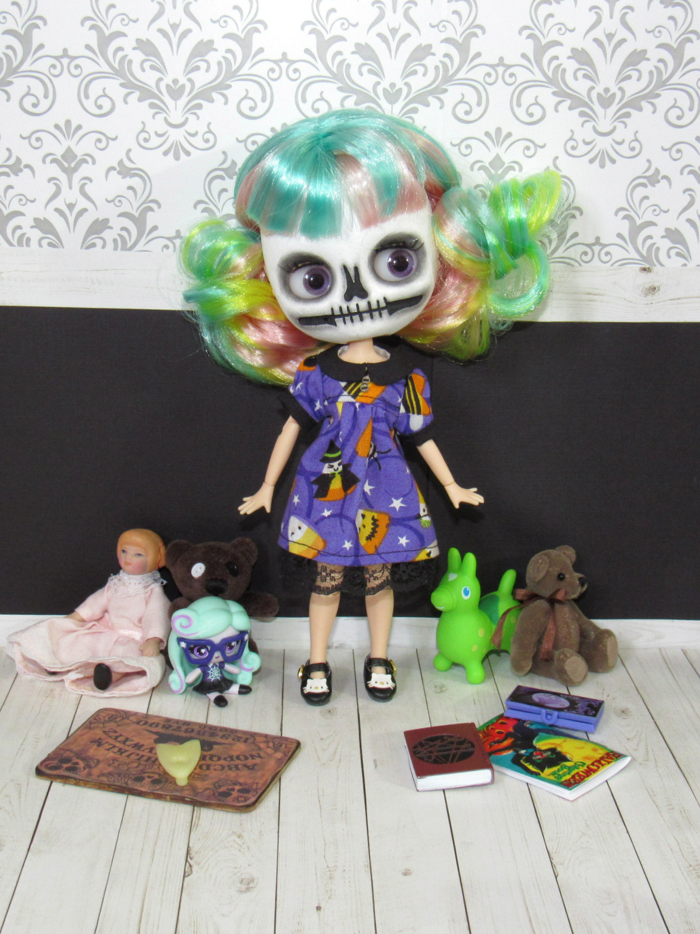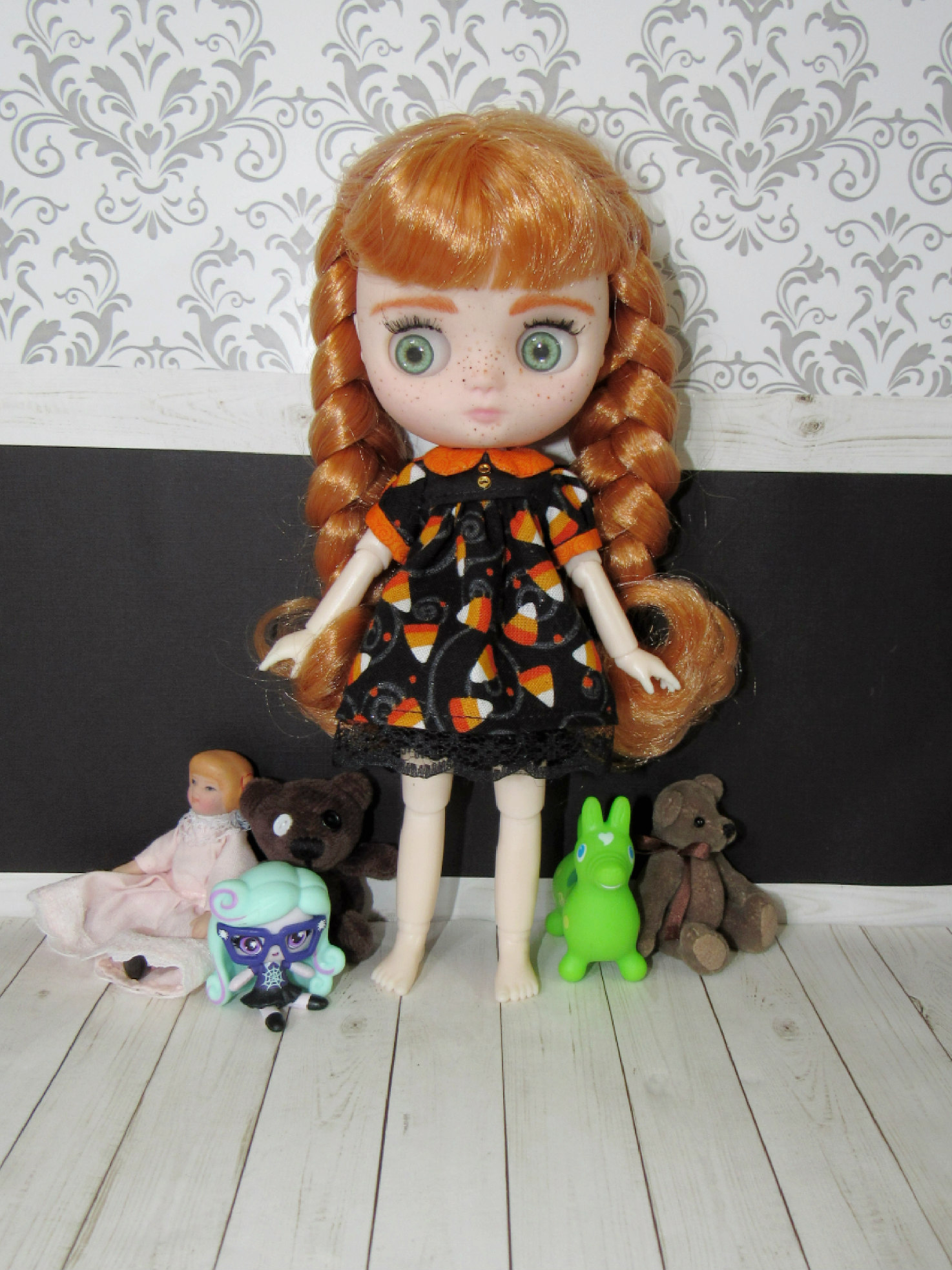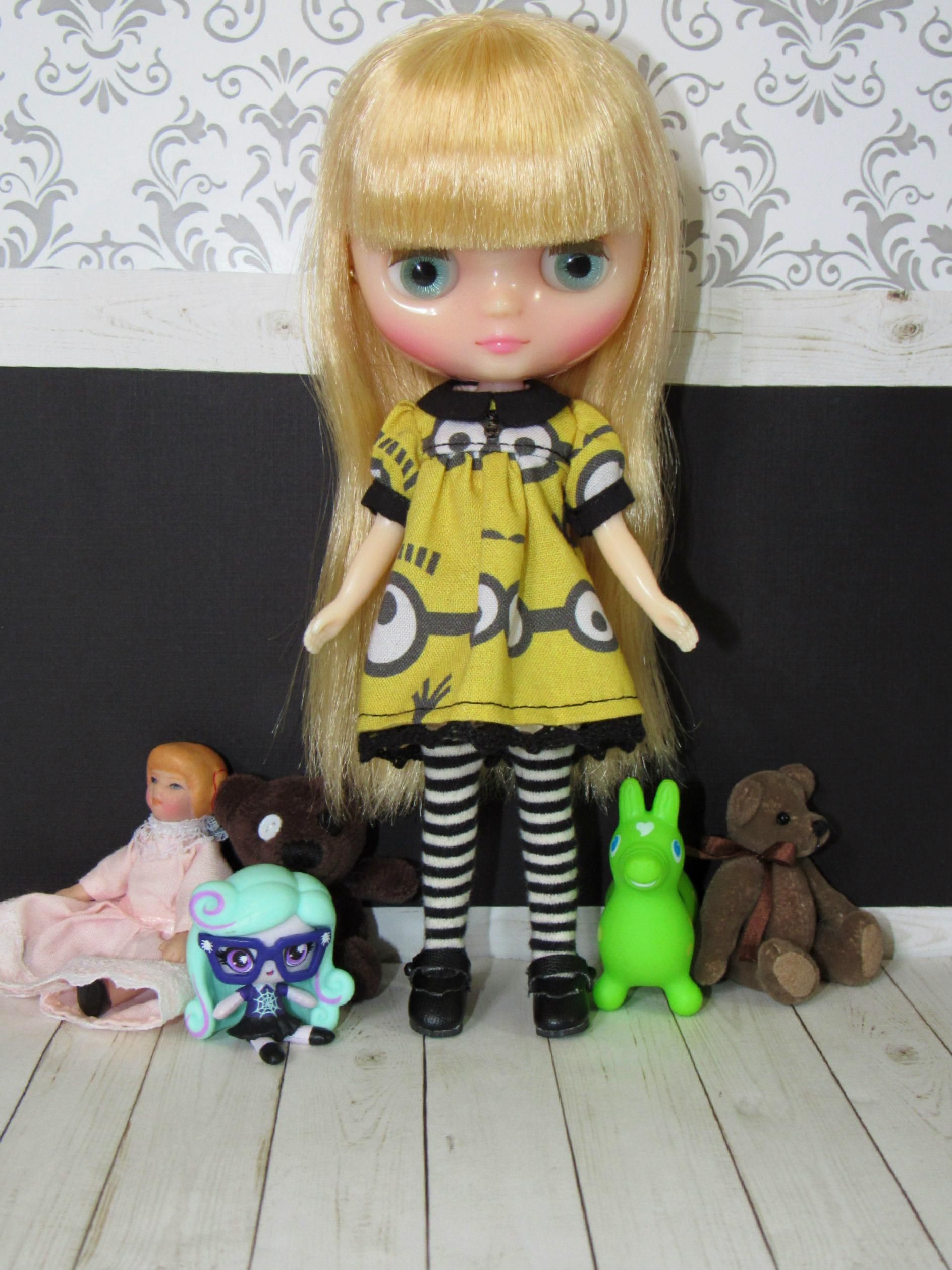 Alice dresses fit Middie Blythe and other similarly sized dolls. Also fits Monster High G1 & G3 as a mini dress/tunic.