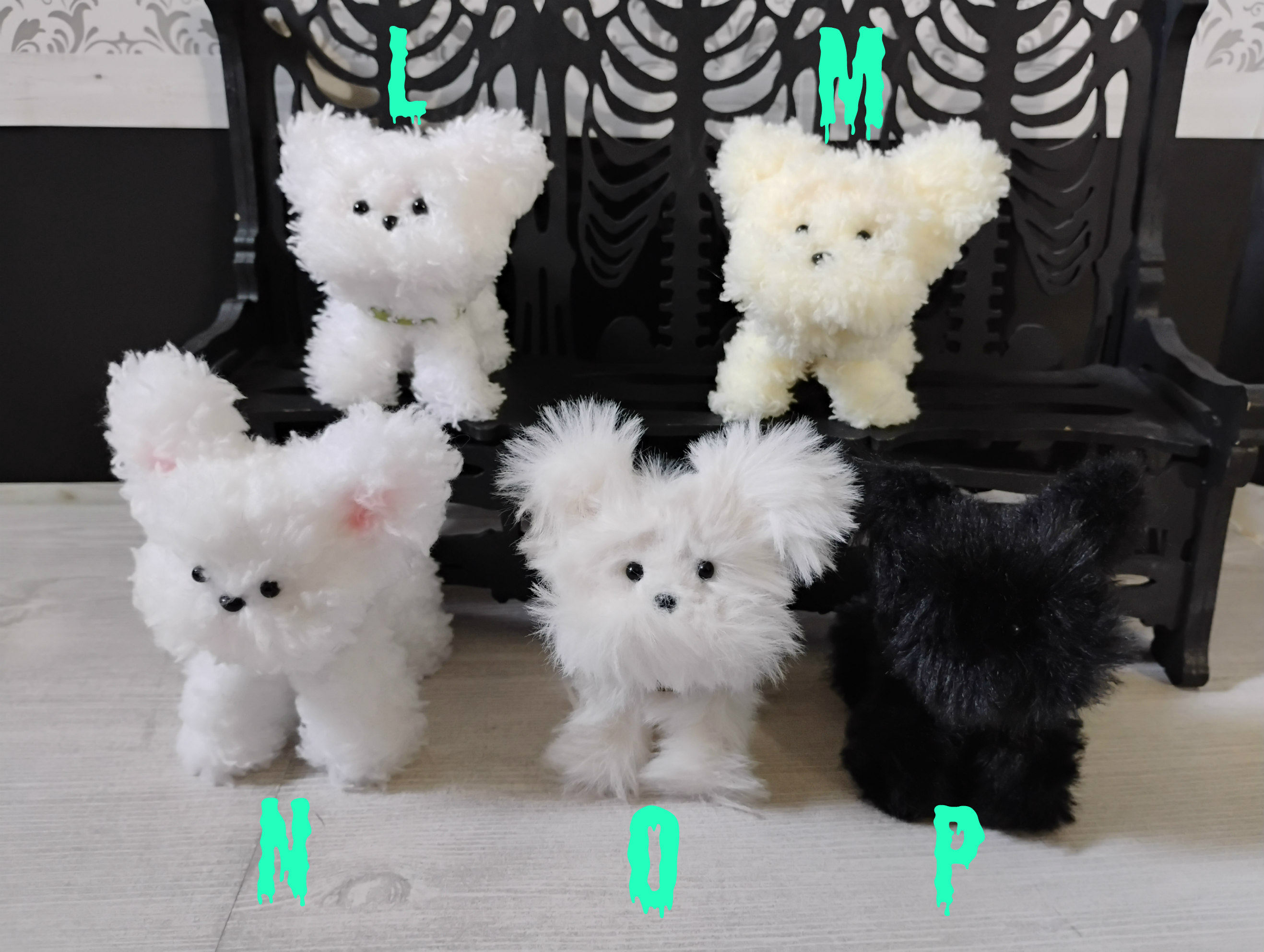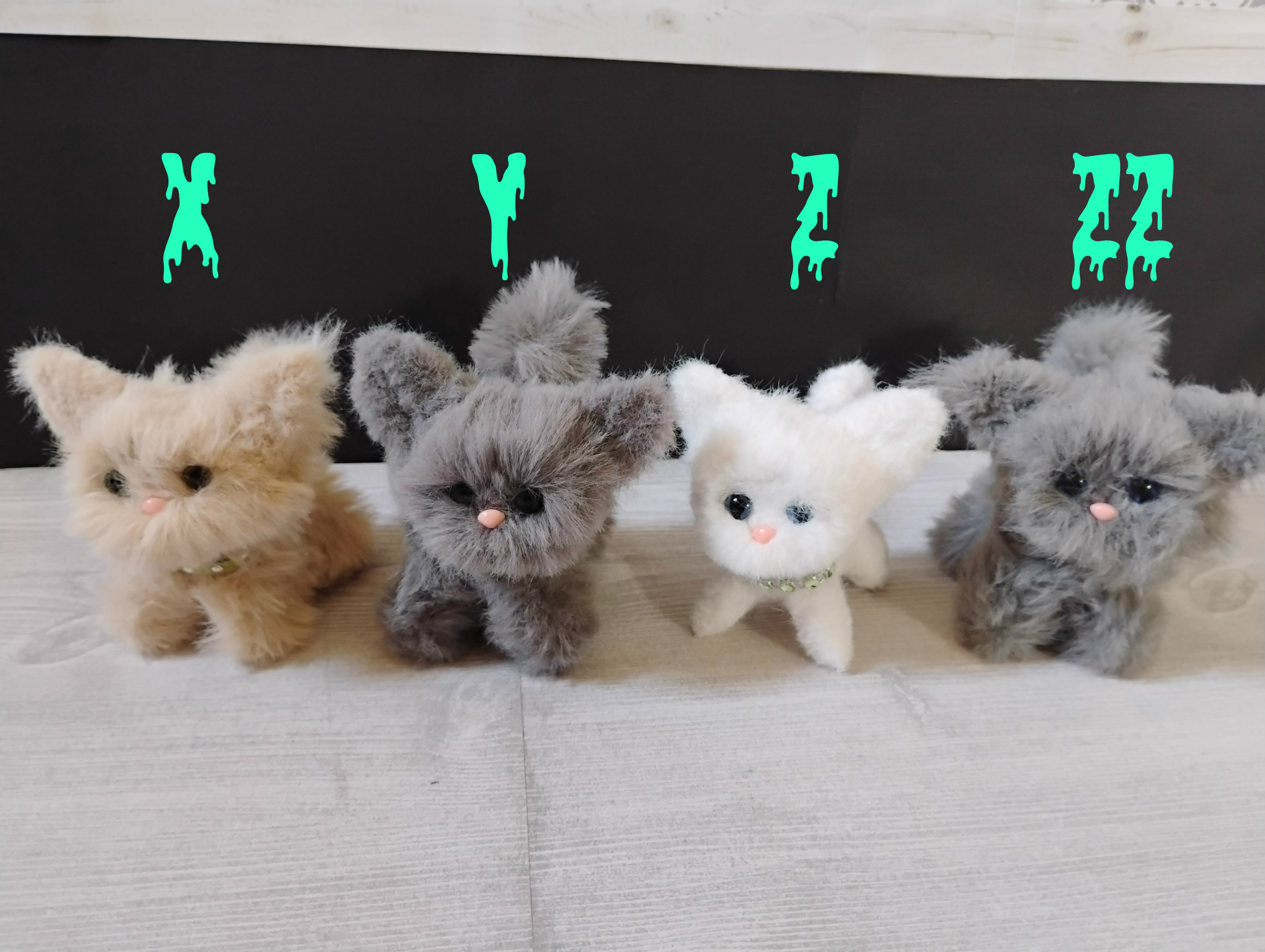 Little palm-sized poseable puppies and kittens. Super soft and fluffy! These are the perfect size to pose with little dolls or dioramas! They look great with Barbie/ Pullip/ Blythe/ MH/ RH/ other 1:6 scale dolls. Eyes and noses are glued in, but are not secure enough to give these to small children. Please keep that in mind when purchasing. These are tiny posable art pieces, not toys.