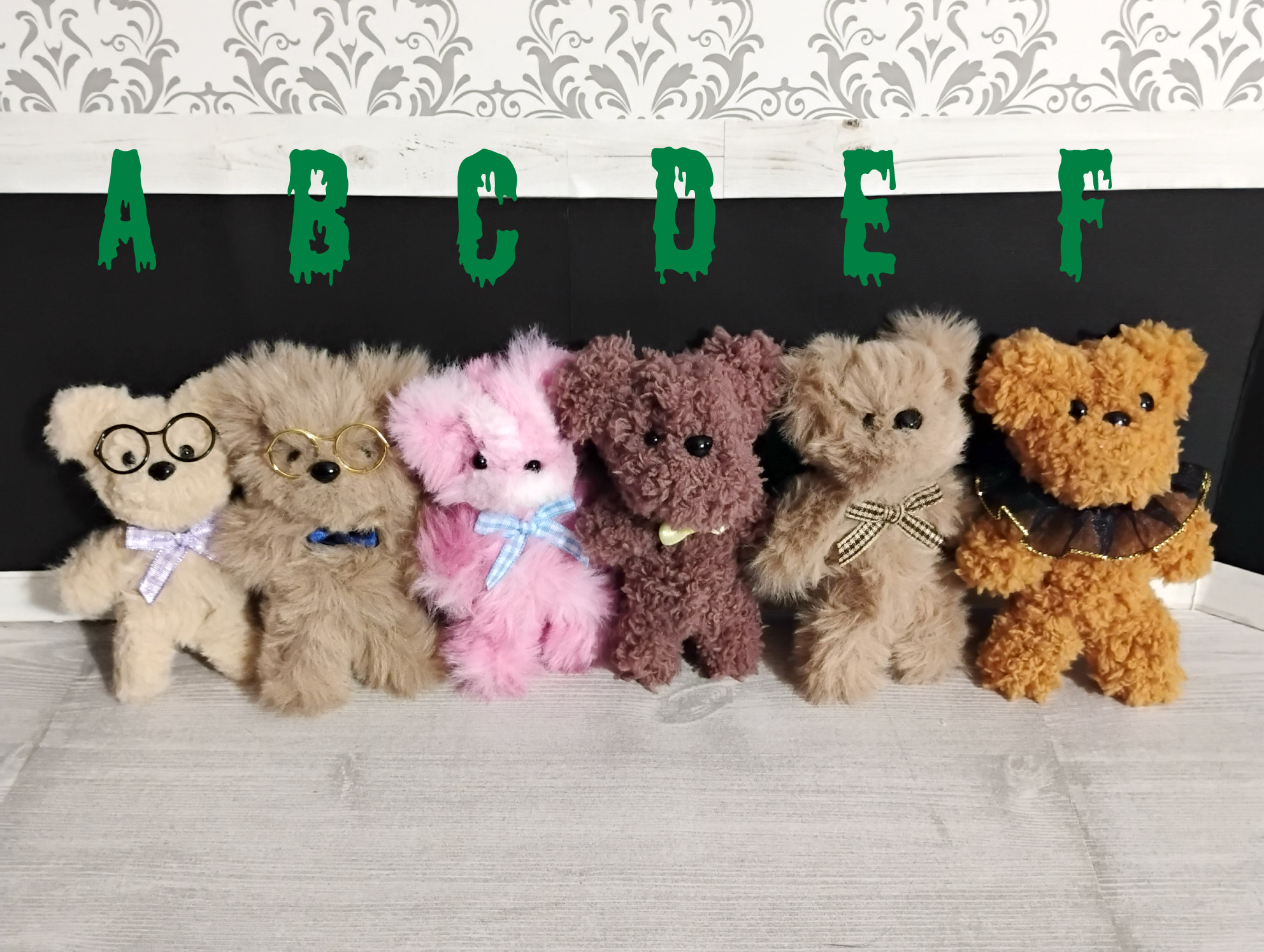 Little palm-sized poseable teddy bears. Super soft and fluffy! These are the perfect size to pose with little dolls or dioramas! They look great with Barbie/ Pullip/ Blythe/ MH/ RH/ other 1:6 scale dolls. Eyes, noses, and bows are glued in, but are not secure enough to give these to small children. Please keep that in mind when purchasing. These are tiny posable art pieces, not toys.