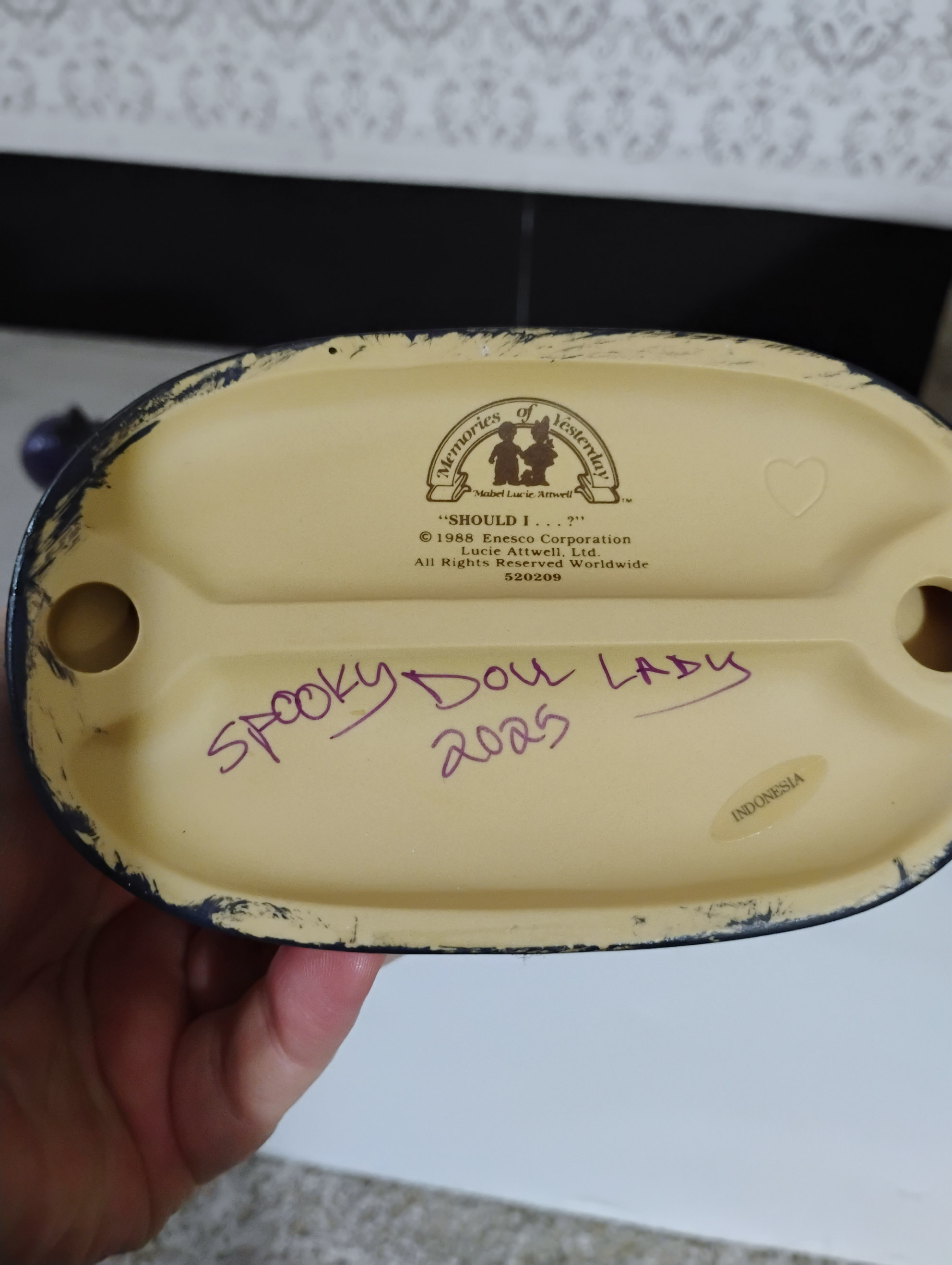 vintage ceramic figurine repainted as a shy little demon girl sitting on a bench next to a boy. will ship USPS Priority with insurance packed as carefully as I can. If you'd like to pay for a shipping upgrade to UPS or FedEx please send me a message first and let me know so I can adjust the price to cover the difference.